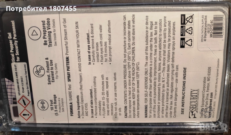 Спрей Sabre Red Crossfire MK3 Pepper Gel Stream - 53 мл, снимка 1 - Газово оръжие - 52123000 Спрей Sabre Red Crossfire MK3 Pepper Gel Stream - 53 мл, снимка 2 - Газово оръжие - 52123000 1/2