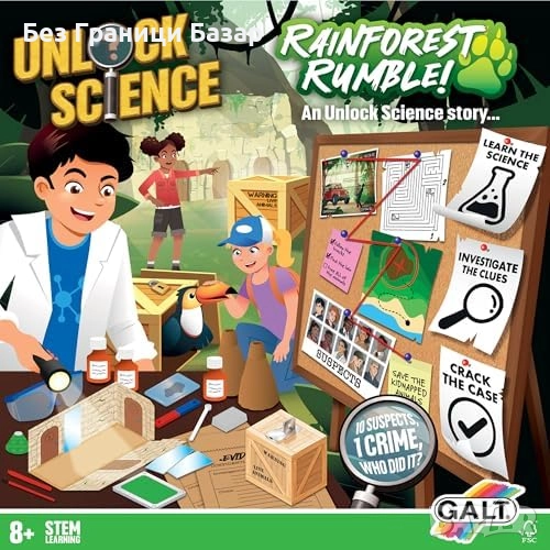 Нов Научен комплект за деца 8+ Rainforest Rumble STEM криминална игра