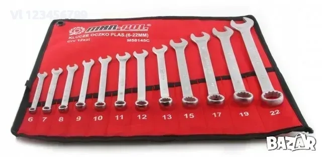 В комплекта влизат ключове с номера 6, 7, 8, 9, 10, 11, 12, 13, 15, 17, 19, 22 mm