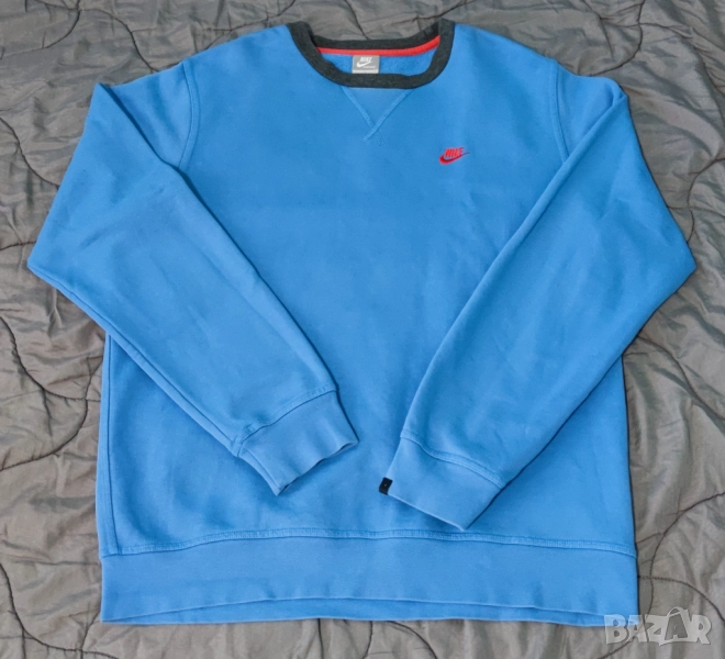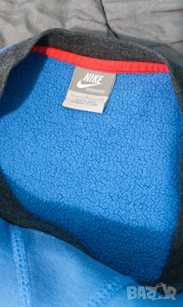 Високо качество Найк блуза в светло син цвят. С хубава подплата, която топли през зимата. Цветът е много добър. Размер L. Логото е нашивка и няма как да се изтърка от пране. Изпращам с преглед и тест. Ако имате въпроси или искате още снимки ми пишете или се обадете. Има опция за плащане с Revolut и изпращане с BoxNow.