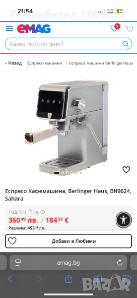 Berlinger Haus немска кафемашина espresso , машината е нова , много красива , с гаранция 1 година и няколко месеца ( подарена е )