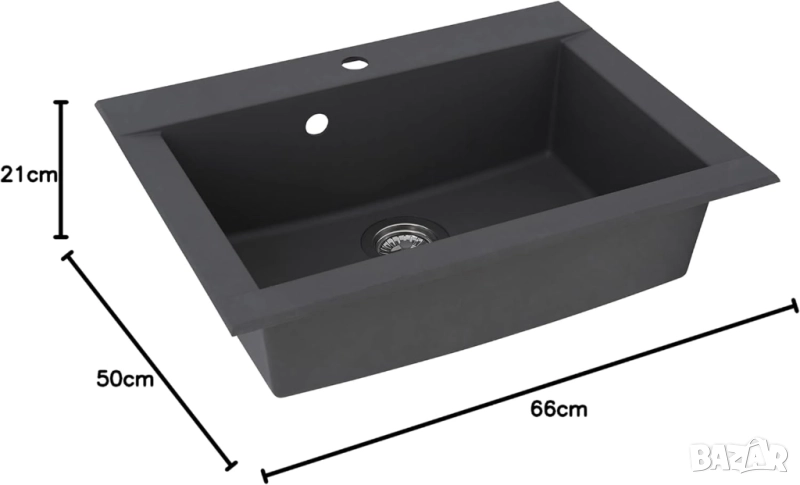 Кухненска Мивка, Respekta Ohio Mineralite Sink 66x50см сива, Устойчива на Надрасквания!