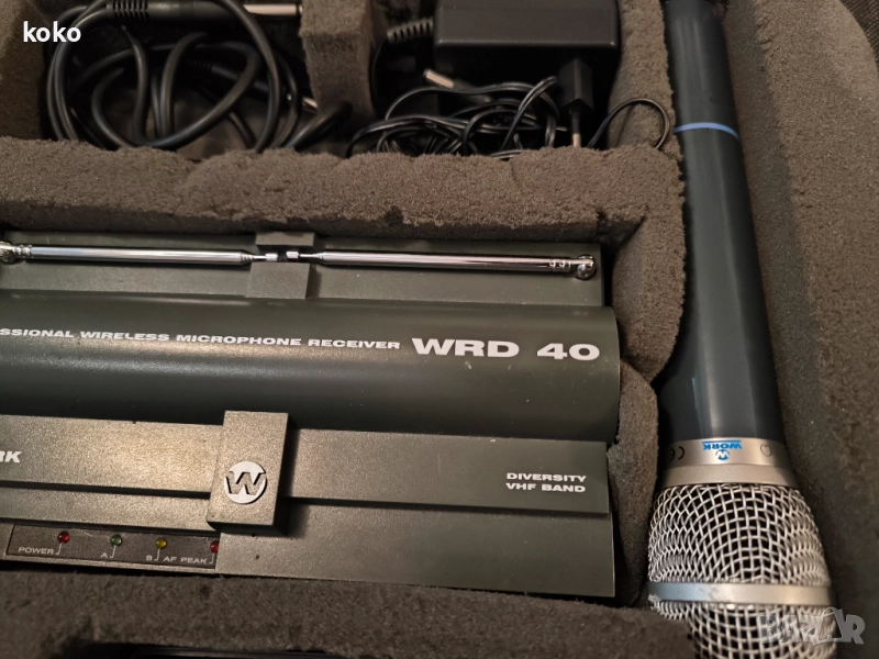 Безжичен микрофон с ресийвър професионален марка Work. Почти не е ползван. Работи с батерия от 9v, не е в комплекта . В оригиналната си кутия