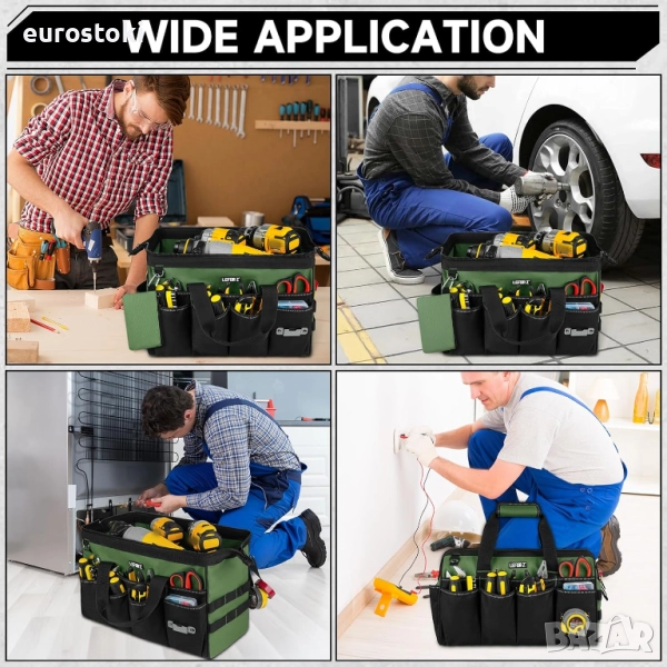 Чанта за инструменти, 40-сантиметрови тежки чанти за инструменти за мъже, 27 джоба, с широк отвор