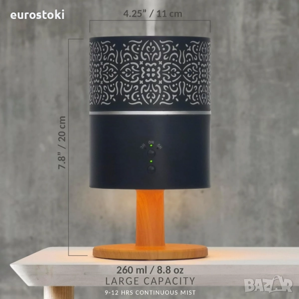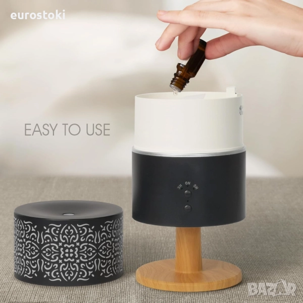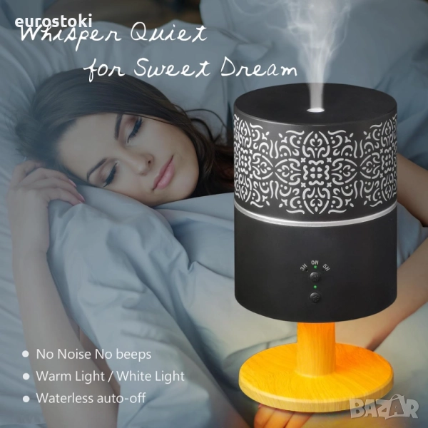 Ароматерапевтичният дифузер е снабден с функция за автоматично изключване без вода. Напълнете го с вода, добавете няколко капки етерични масла и създайте комфортно и уникално ароматно пространство за себе си.