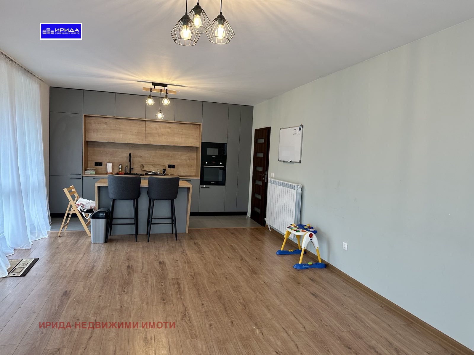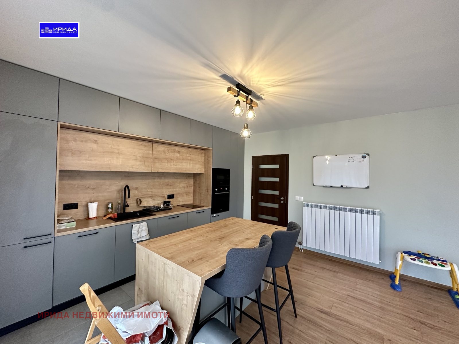 Апартаментът се продава частично обзаведен -поръчкови кухненски шкафове, кухненски остров, висок клас ел. уреди ,ламинат, гранитогрес. Жилището се отоплява на ГАЗ и ТОК. Изложение Ю/И.