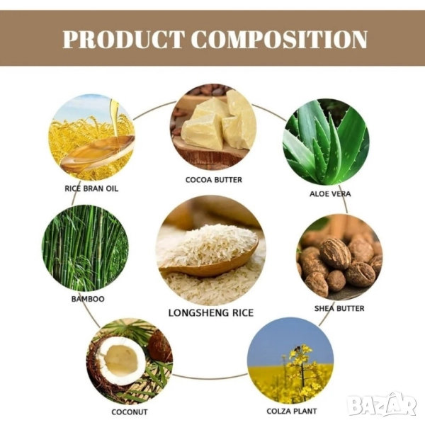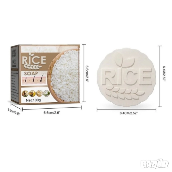 Богат на оризов екстракт и оризова вода – естествени съставки, които подхранват и възстановяват косата и кожата. Намалява косопада – стимулира скалпа и укрепва космените фоликули. Дълбоко хидратиращ – запазва естествената влага на кожата и косата. Без вредни съставки – не съдържа парабени, сулфати и изкуствени аромати. Подходящ за чувствителна кожа – нежна формула, която не предизвиква раздразнения. Тип: Натурален сапун; Основни съставки: Оризов екстракт, оризова вода, натурални масла; Функция: Почиства, хидратира, намалява косопада; Подходящ за: Всички типове кожа и коса; Количество: 100 гр; Размери на сапуна: 6.4 х 6.4 см; Размери на опаковката: 6.6 х 6.6 х 2.5 см; Без съдържание на: Парабени, сулфати, изкуствени аромати.