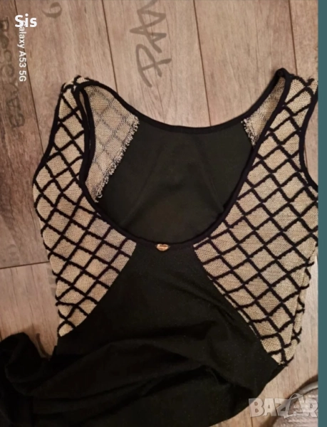 Има изрязан гол гръб,цепка отпред .Стои страхотно и не описва! Подходяща за повод.Роклята е обличана само веднъж на сватба.Неразличима от нова!