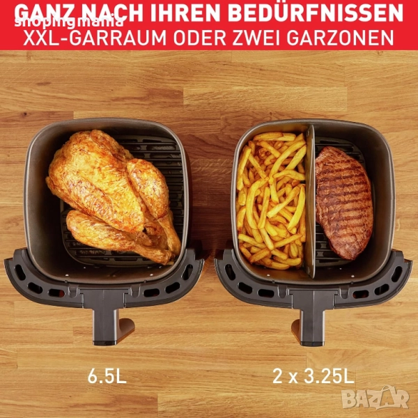 Фритюрник 2 в 1 с капацитет XXL за бързи резултати и приготвяне на 2 рецепти едновременно;