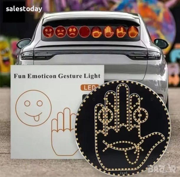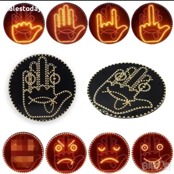 LED автомобилна светлинна табела с дистанционно за кола, усмихнато лице, ръка и др. LED лампата за задно стъкло на автомобила е аксесоар за всеки автомобилен ентусиаст. Изберете от разнообразие от забавни емотикони и жестове, за да покажете настроението и стила си. Това е чудесен начин да изразите емоциите си по време на шофиране, независимо дали е щастливо лице или вдигнат палец.Лампата се монтира лесно. Просто извадете продукта, фиксирайте го с двойнозалепващата лента (включена) на задния прозорец или в желаната позиция и натиснете за 30 секунди. Препоръчително е да почистите и подготвите повърхността преди монтажа. 1 x LED дисплей с емоджи за кола, 1 x дистанционно управление, 1 x ръководство за потребителя. Трябва да се захранва от три AA батерии (не са включени), които могат да се използват приблизително 4-5 месеца. Дистанционното трябва да е с батерия 12V23A (включена), която може да издържи 7-8 месеца.