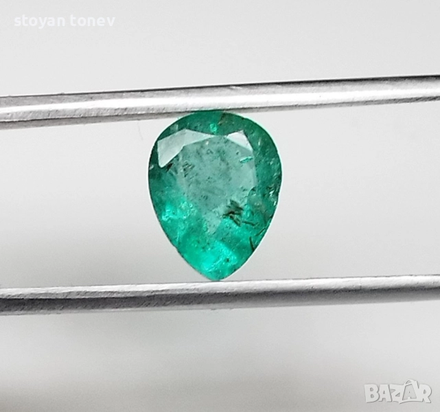 изумруд с типичната за вида включеност. Приветлив свеж цвят с приятен блясък придружени от репорт за автентичност.