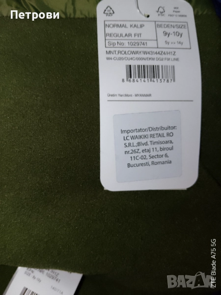 Ново яке с етикети за 9-10 години Цена в сайта на Waikiki 45 лв.