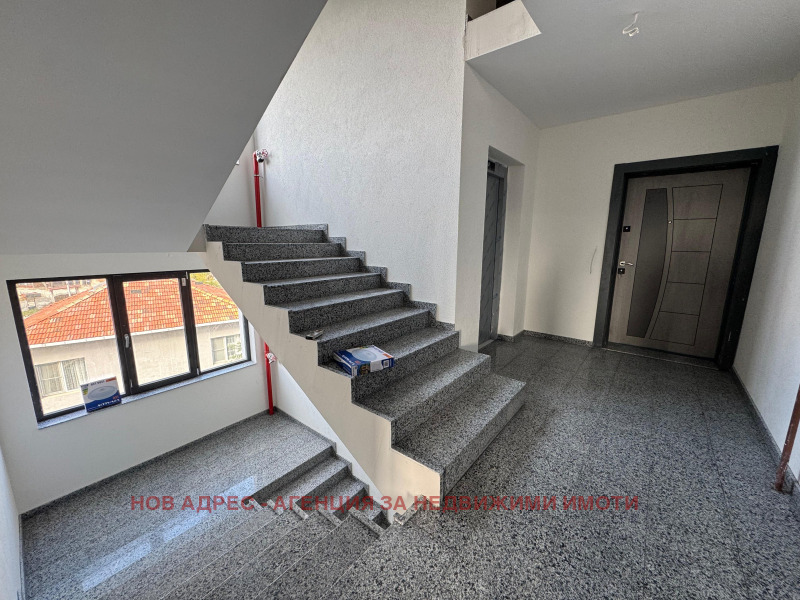 Тристаен апартамент с функционално разпределение и съвременни удобства, разположен на 5-ти етаж в нова, модерна сграда с шумоизолиран и модерен асансьор. Имотът е с АКТ 14 и се предлага с готови общи части с гранит и лед осветление , газификация с радиатори, както и изградени инсталации за интернет и телевизия , домофонна система с камера и чип .