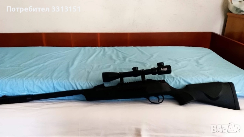 приклад и нагласящи се светещи мерни прибори. С вграден саунд модератор. Много точна и прецизна. Цена без оптика 230лв ЦЕНАТА Не СЕ КОМЕНТИРА . С оптика Bushnell 3x9x40 цената е 300лв. Разполагам с налични мерни прибори като лазери оптики и бързомери които може да видите в другите ми обяви. Възможна ДОСТАВКА с куриер.