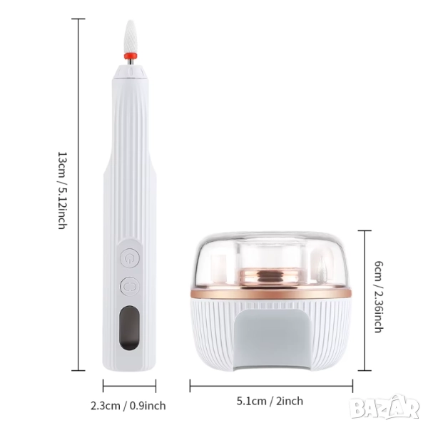 Оборудвано с акумулаторна основа за съхранение, това устройство за нокти поддържа директно зареждане и зареждане на основата; Основата може да съхранява 8 шлифовъчни глави за по-лесна употреба.