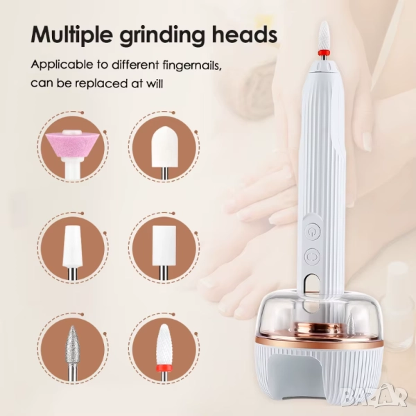 Оборудвана с 6 различни вида сменяеми шлифовъчни глави, нашата машина за нокти може да отговори на вашите различни нужди за красота на ноктите и да се справи с различни проблеми с ноктите.