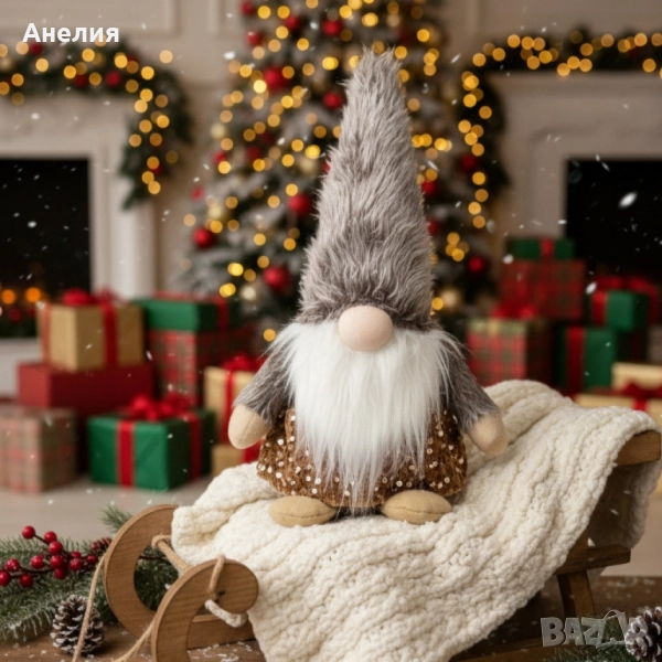 Тип продукт: Декоративна играчка – коледен гном (настолна украса);