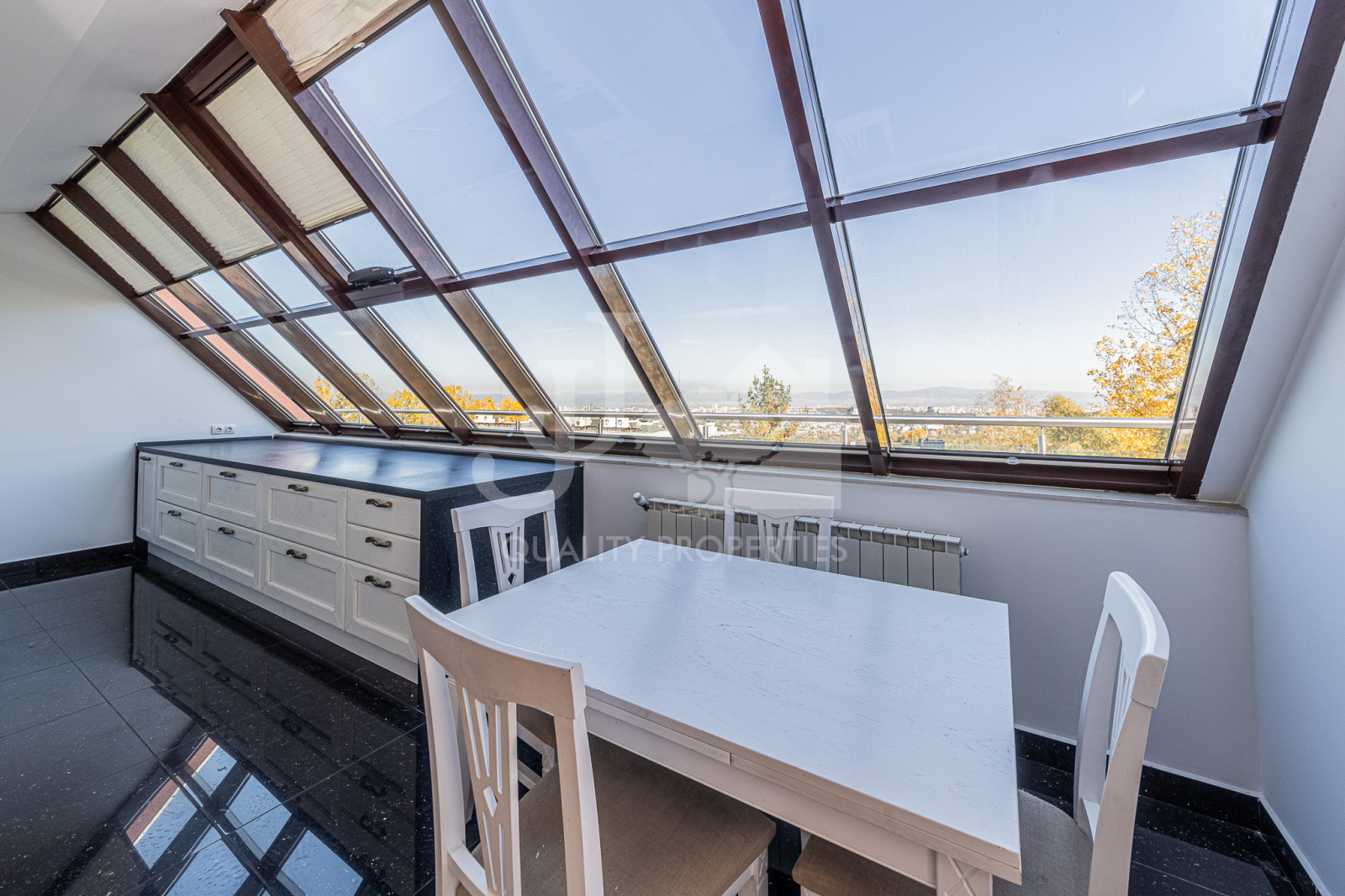 ВЕЛИКОЛЕПЕН ЛУКСОЗЕН ПЕНТХАУС! ЗАТВОРЕН КОМПЛЕКС! 200кв.м. ТЕРАСА! НЕВЕРОЯТНА ПАНОРАМА! Предлагаме на Вашето внимание напълно обзаведен пентхаус, находящ се в бутиков затворен комплекс с контролиран достъп, видеонаблюдение, детска площадка, паркинг, басейн и зелени площи. Районът е изключително тих и спокоен, същевременно в непосредствена близост до ул. Кумата, отлична инфраструктура. Комплексът се отличава с невероятната си атмосфера, прекрасно озеленяване и чист въздух. Предназначен е за хора обичащи лукса и модерния начин на живот, близо до природата и с чудесен изглед към планината и столицата. Пентхаусът е завършен и обзаведен без никакви компромиси в изпълнението и качеството-италианска вградена кухня, италиански мебели, паркети от най-висок клас, луксозни бани. Апартамента е разположен на целия 5-ти последен етаж и се състои от: входно антре с вградени гардероби, просторен дневен тракт със сепарирани- холна част, трапезария, кът пред камината, модерна вградена кухня, зимна градина и прекрасна тераса - 200кв.м, която обикаля целия пентхаус и предоставя 360- градуса панорама, прекрасен master bedroom с кът за отдих и голяма собствена баня с хидромасажна вана и душ кабина, още две спални, втора баня с тоалетна. Отоплението е на газ, има охранителна система СОТ. В ОБЯВЕНАТА ЦЕНА СА ВКЛЮЧЕНИ ДВЕ ПАРКОМЯСТО, ТАКСА ПОДДРЪЖКА КЪМ КОМПЛЕКСА И ДДС! Удобно е да се обаждате по всяко време. Работим с колеги по всички наши оферти. Водещ брокер: Николай Николов - 0887714407. Оферта номер: 0418.