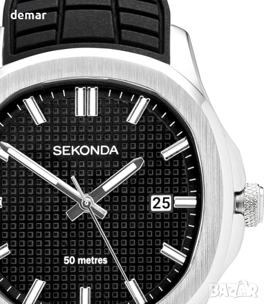 Този часовник съчетава елегантен, модерен дизайн със солидна конструкция, с модерен черен циферблат с решетка, гръб от неръждаема стомана и удобна силиконова каишка с дизайн на гума. Формованата му форма приляга естествено на китката, а аналоговият дисплей предлага добра видимост дори при слаба светлина благодарение на отразяващите сребърни детайли. Коронката позволява лесно регулиране на датата и часа, а часовникът е водоустойчив до 50 метра. Предлага се и с практична филцова торбичка, идеална за безопасно съхранение или пътуване.
