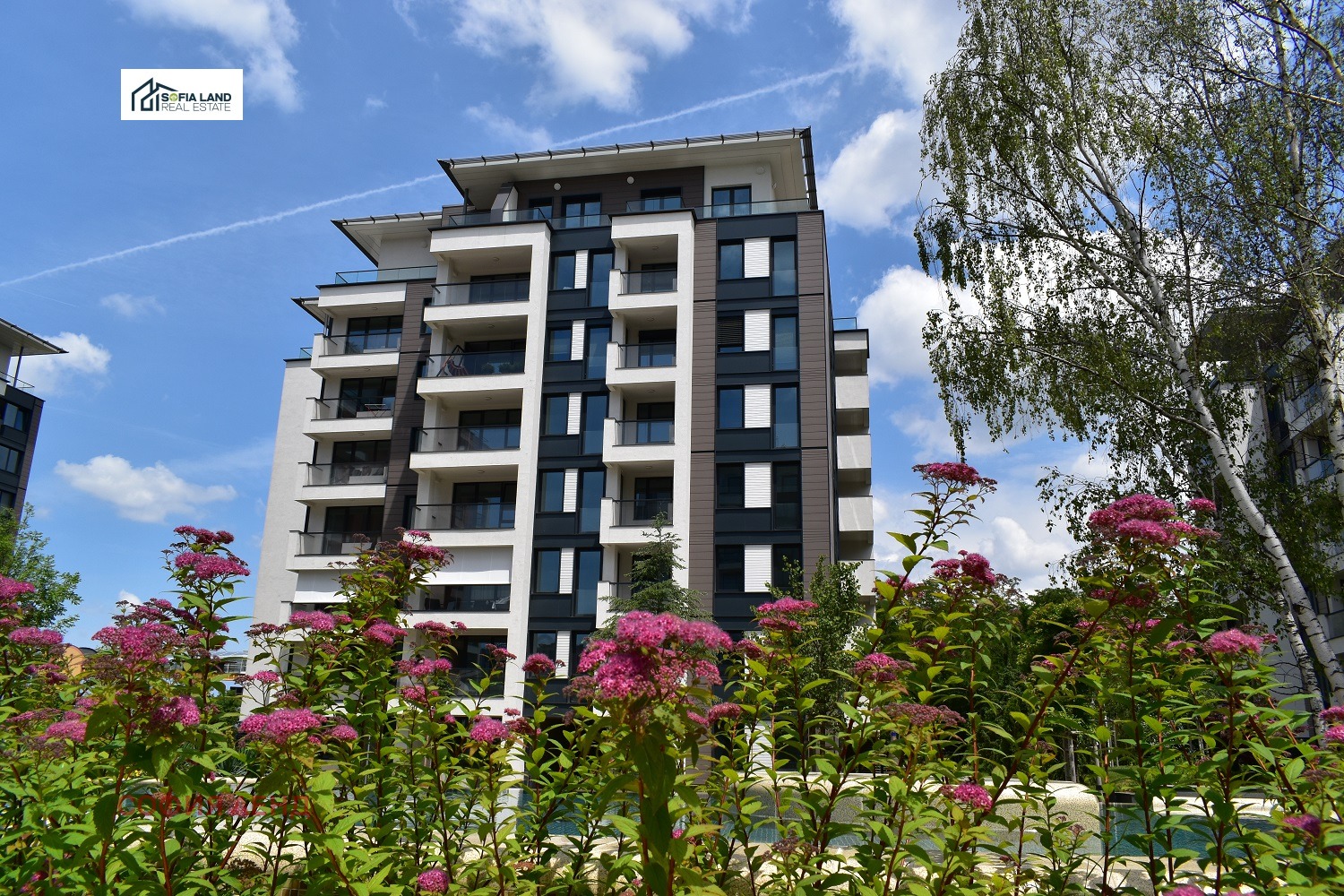 Продава се просторен четиристаен обзаведен апартамент в затворен комплекс 'София Ленд Резиденс' с изложение изток, югоизток, юг. Жилището се състои от антре, всекидневна, кухня с трапезария, две спални, детска, две бани, гардеробна, мокро помещение и две тераси. Фасадата на сградата е комбинация от мазилка и керамични плочи с изолация от стиропор 10 см и керамична обшивка тип Baumit с едностранно каширана стъклена вата / Isover / и противоветрово фолио. Дограмата е алуминиева на Schuco , като френските прозорци са с двуплоскостно отваряне чрез плъзгане с прибиране.Терасите са тип лоджия с настилка гранитогрес със стъклен парапет /дуплекс/и двупластова битумна хидроизолация. Застроената площ на жилището е 178.84, общите части са 27.66. Общата площ в квадратни метри е 206.50. В цената не са включени две големш подземни паркоместа с обща цена 100 000 евро.