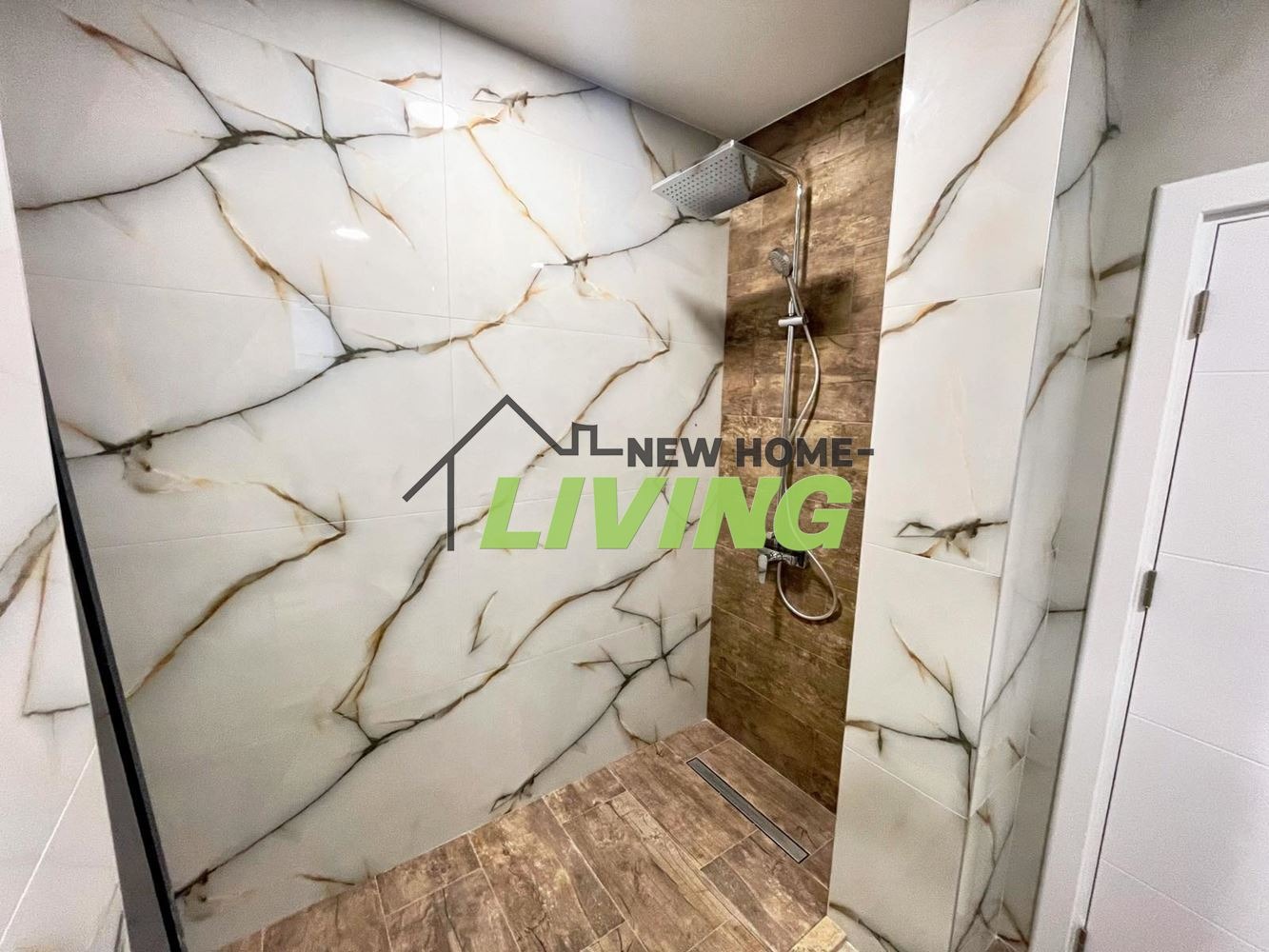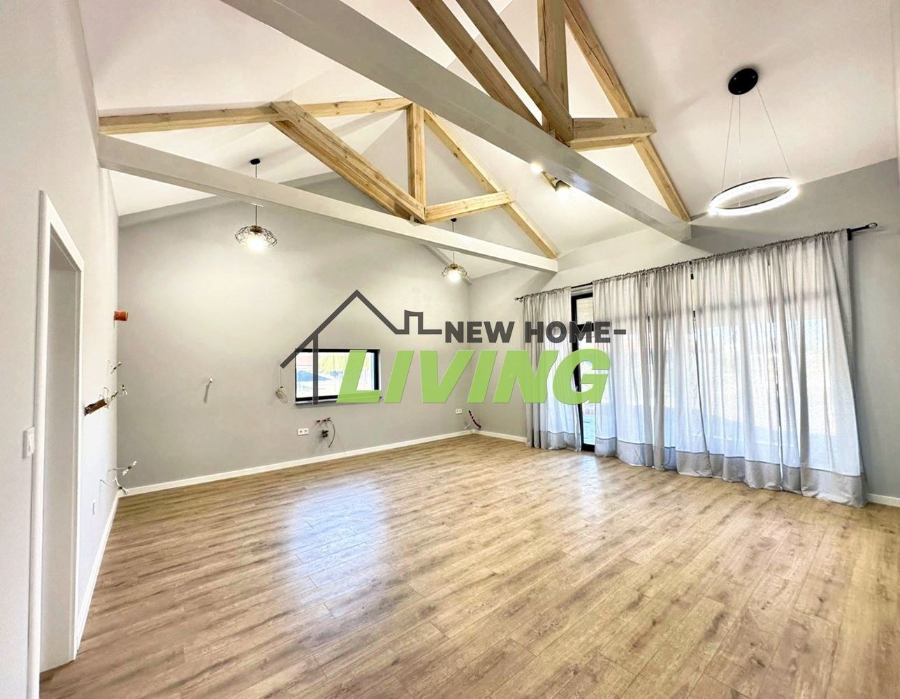 Разпределение: входно антре, всекидневна с кухненски кът и излаз на голяма веранда, вътрешен коридор, родителска спалня с баня и тоалетна, детска спалня с обща баня и тоалетна, трета спалня със стълбище, водещо до подпокривно пространство.