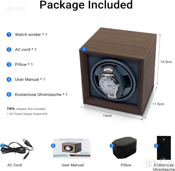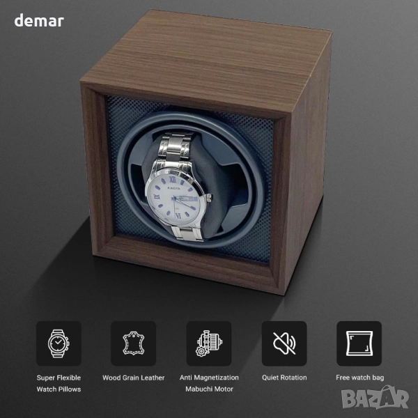 Изработена с елегантен фурнир от черен орех и мека кадифена вътрешност, тази стилна навиваща машина за часовници предпазва часовниците от надраскване, като същевременно добавя нотка лукс. Регулируемата ѝ възглавничка от мемори пяна пасва сигурно на различни размери часовници, което я прави подходяща както за мъжки, така и за дамски механични часовници. Оборудвана с универсални USB и DC опции за захранване, тя предлага удобна употреба навсякъде. Усъвършенстваната антимагнитна технология и антистатичната платка осигуряват надеждна защита срещу смущения, а вертикалният механизъм за навиване гарантира правилна грижа за часовника. Идеална за лична употреба, показване или подарък по специални поводи.