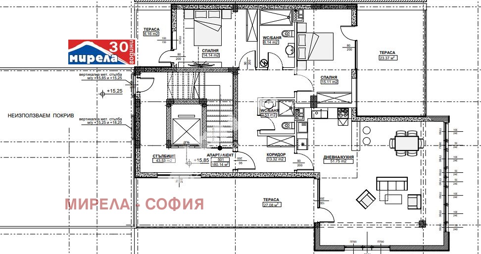 * Обособени места за климатици за външните тела съобразени със съвременните изисквания да не се загрозява фасадата.