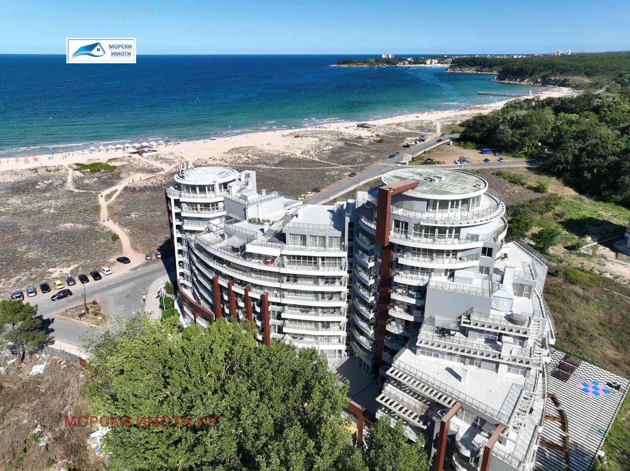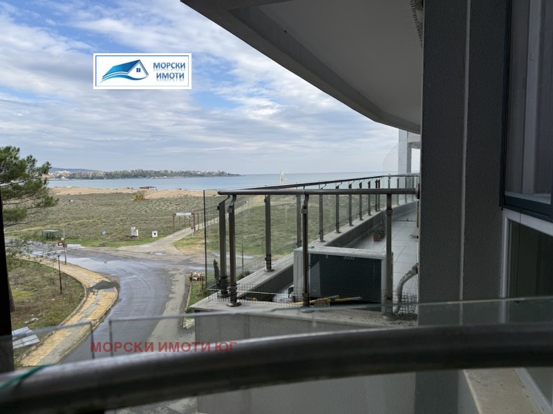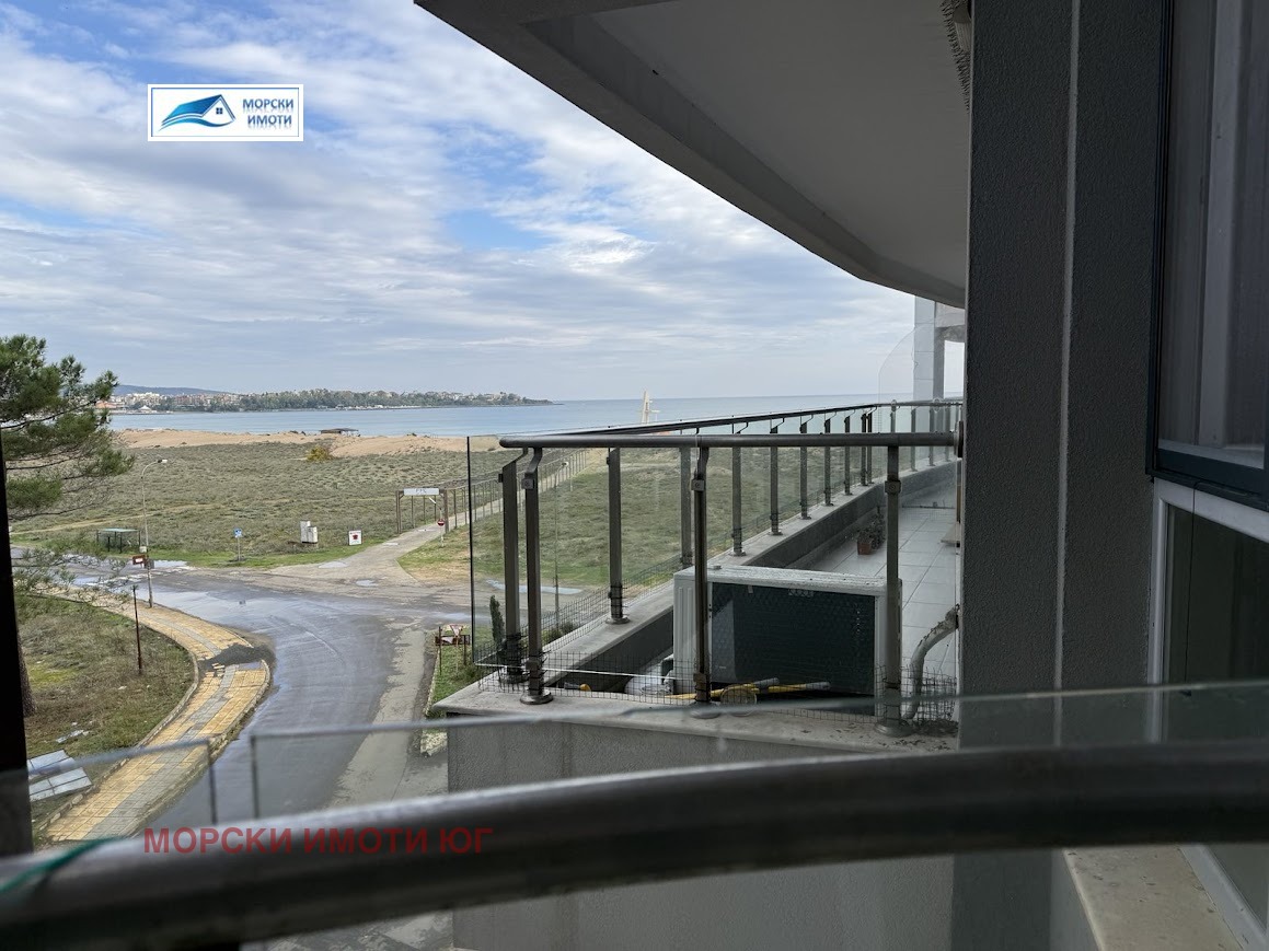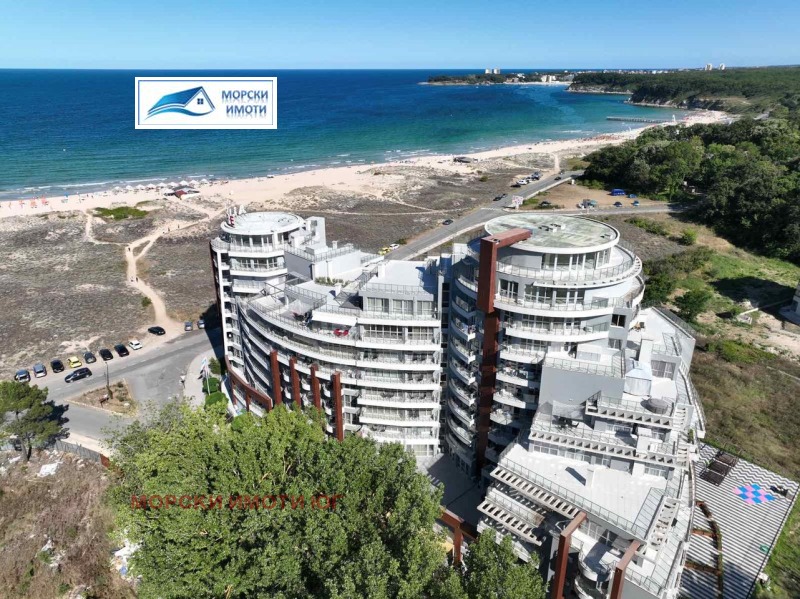 Морски имоти продава просторен и отлично обзаведен двустаен апартамент в Приморско, в сграда първа линия море, част от комплекс, ситуиран на самия плаж на ММЦ. Апартаментът е с площ 80 кв.м., панорамен и се състои от антре, дневна с кухненски, бокс, спалня , санитарен възел и тераса с панорама към морето. Изключително добре обзаведен и оборудван!!! Избено помещение- 3.52 кв.м. Комплексът граничи непосредствено с морската ивица и пясъчните дюни , с луксозни общи части, басейн, ресторант , денонощна охрана. Паркинг. Етаж 3, непоследен. Такса поддръжка 10 Евро/ кв.м.
