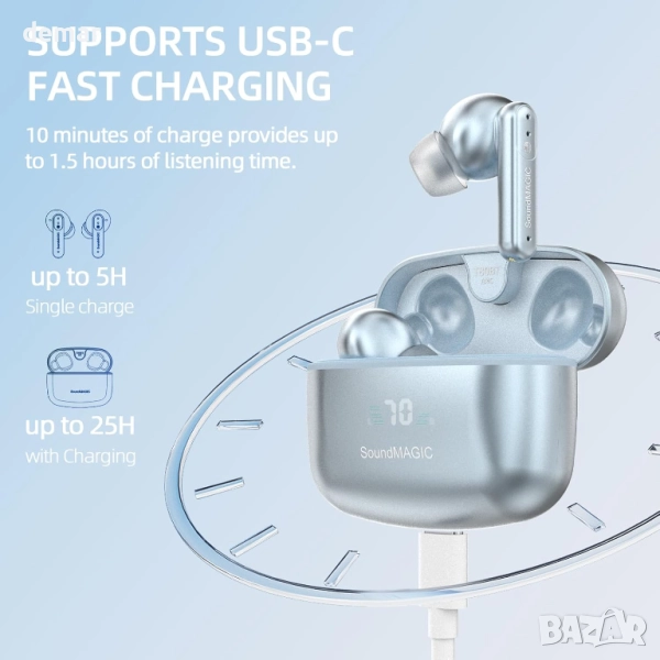 Soundmagic T80BT ANC Безжични слушалки с Hi-Res аудио, хибридно активно шумопотискане