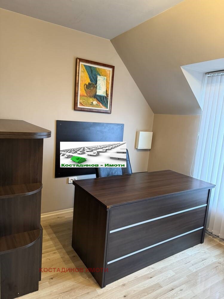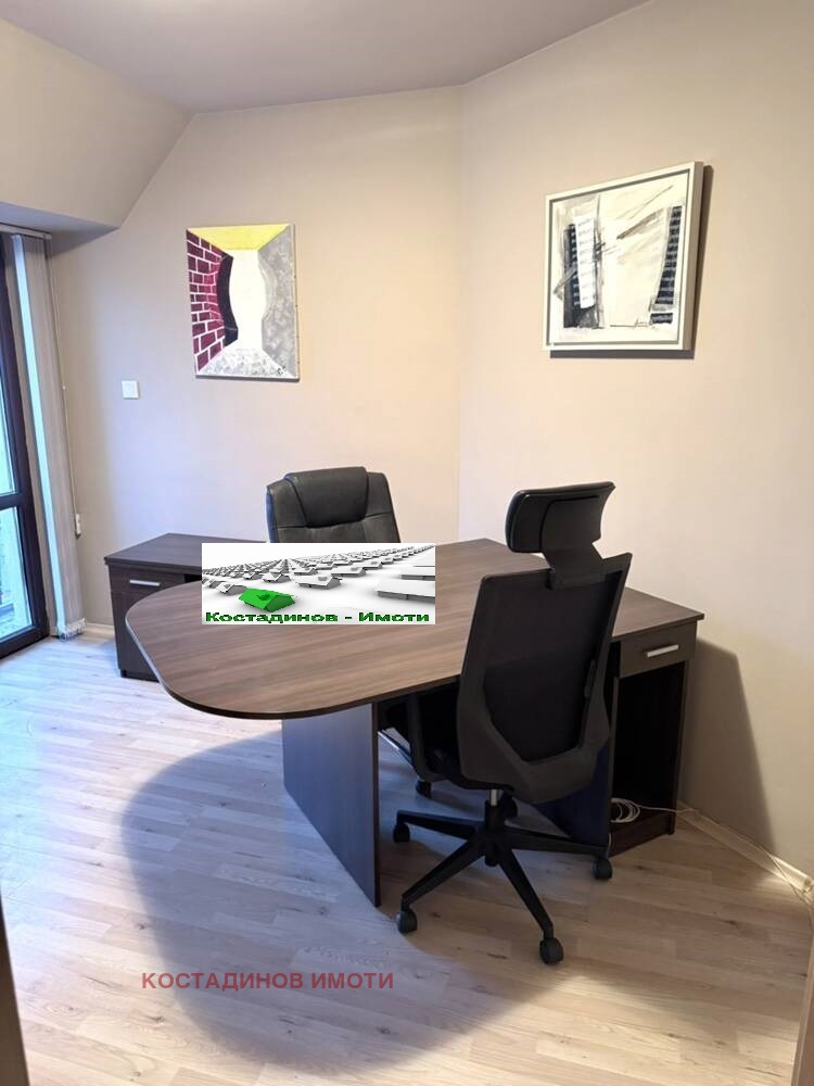 Сградата е с Асансьор и видео-домофонна система. Представлява 3 отделни помещения, без преход, санитарен възел и баня. От всяко помещение се излиза на тераса с приятна панорама. Едното помещение е ситуирано като приемна със заседателна маса и 2 работни кабинета с възможност за 3 работни места. Офисът е климатизиран с отделни климатици във всяко помещение и с ламинат настилки, обзаведен с офис мебели, собствена СОТ техника, видео-домофон и окабеляване. Помещенията са вотлично състояние, готовза нанасяне. Последните 11 години, офисът е бил адвокатска кантора. При сериозен интерес и огледи обадете се на фирма Костадинов Имоти!