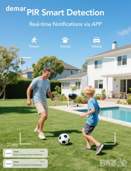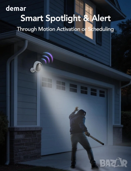 Тази безжична външна охранителна камера се инсталира само за седем минути без окабеляване и работи с акумулаторна батерия, поддържана от соларен панел за непрекъснато и екологично захранване. Тя осигурява рязко 4MP HD видео с инфрачервено и цветно нощно виждане за ясно наблюдение при всякакви условия. Вграденият PIR сензор за движение осигурява точно откриване с незабавни телефонни известия и автоматично прожекторно осветление за възпиране на натрапници. Съвместима с 2.4G и 5G Wi-Fi, тя предлага гъвкаво разположение и надеждна свързаност. Опциите за съхранение включват безплатен еднодневен цикличен запис, поддръжка на локална SD карта до 128GB (не е включена) и опционални облачни планове за удължен запис.