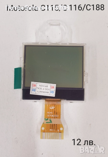 Дисплей за Motorola E330 - 5 лв., T191/ C200 - 8 лв. , C139/ C140 - 12 лв. , C115/ C116/ C188 - 12 лв., C261/ C271/ C257 - 12 лв., W200/ W208 - 12 лв., C350/ C450/ C550 - 15 лв.,