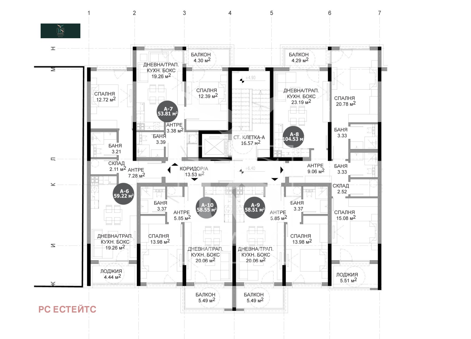 Вход А 37 апартамента (27 двустайни, 9 тристайни, 1 четиристаен)