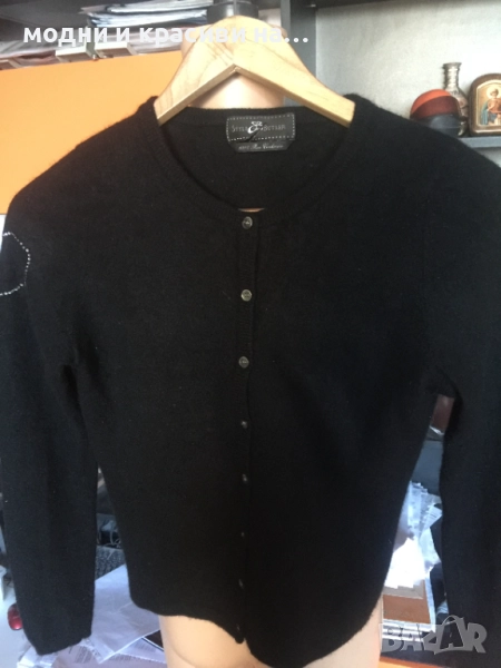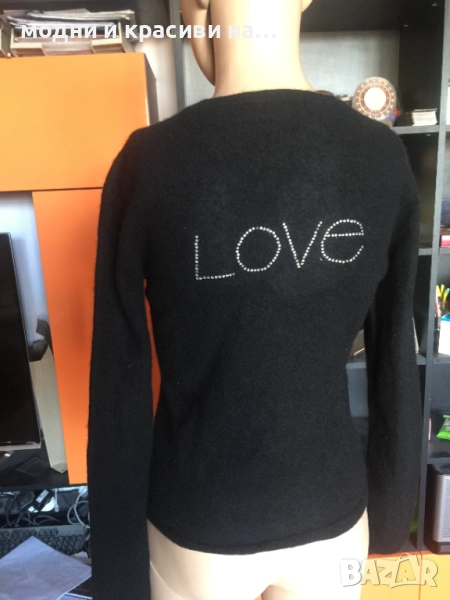 Жилетката е много красива, мека, пухкава (заради кашмира) и нестандартна (надписа). Изработена от най-мекото и пухкаво плетиво-кашмир, галещ кожата и създаващ усещането на топла прегръдка и уют. Качествено плетиво, което едновременно топли и е изолатор на студа, както и гали кожата и го няма неприятното усещане от боцкане на истинската вълна.