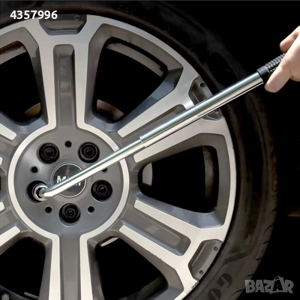 ключ за джанти, предназначен за лесно и удобно развиване или затягане на болтове при автомобили, бусове и джипове. Благодарение на разтегателната конструкция от 380 мм до 500 мм, осигурява по-голям лост и по-малко усилие при работа.