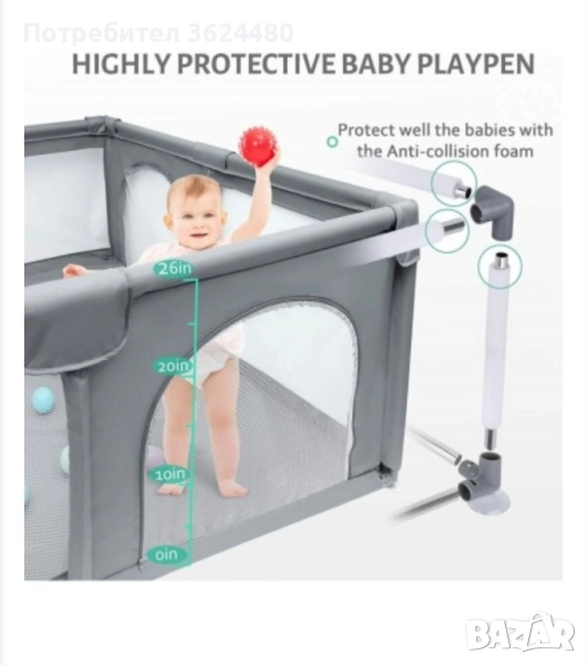 Детска кошара за игра с размери 200х200 см