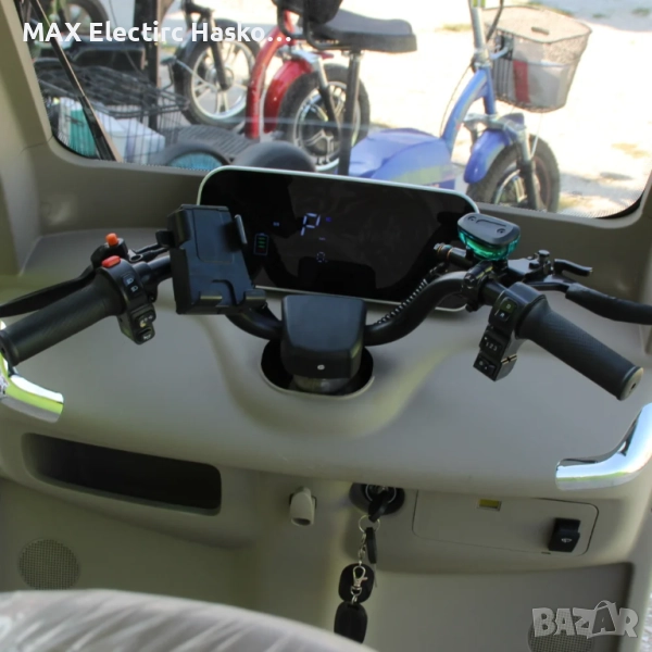 Триместна електрическа триколка Max Motors LUXURY BUS е съвършеното средство за комфортно и екологично придвижване. Тя е създадена за ежедневни разходки, туристически атракциони, хотели и курорти.