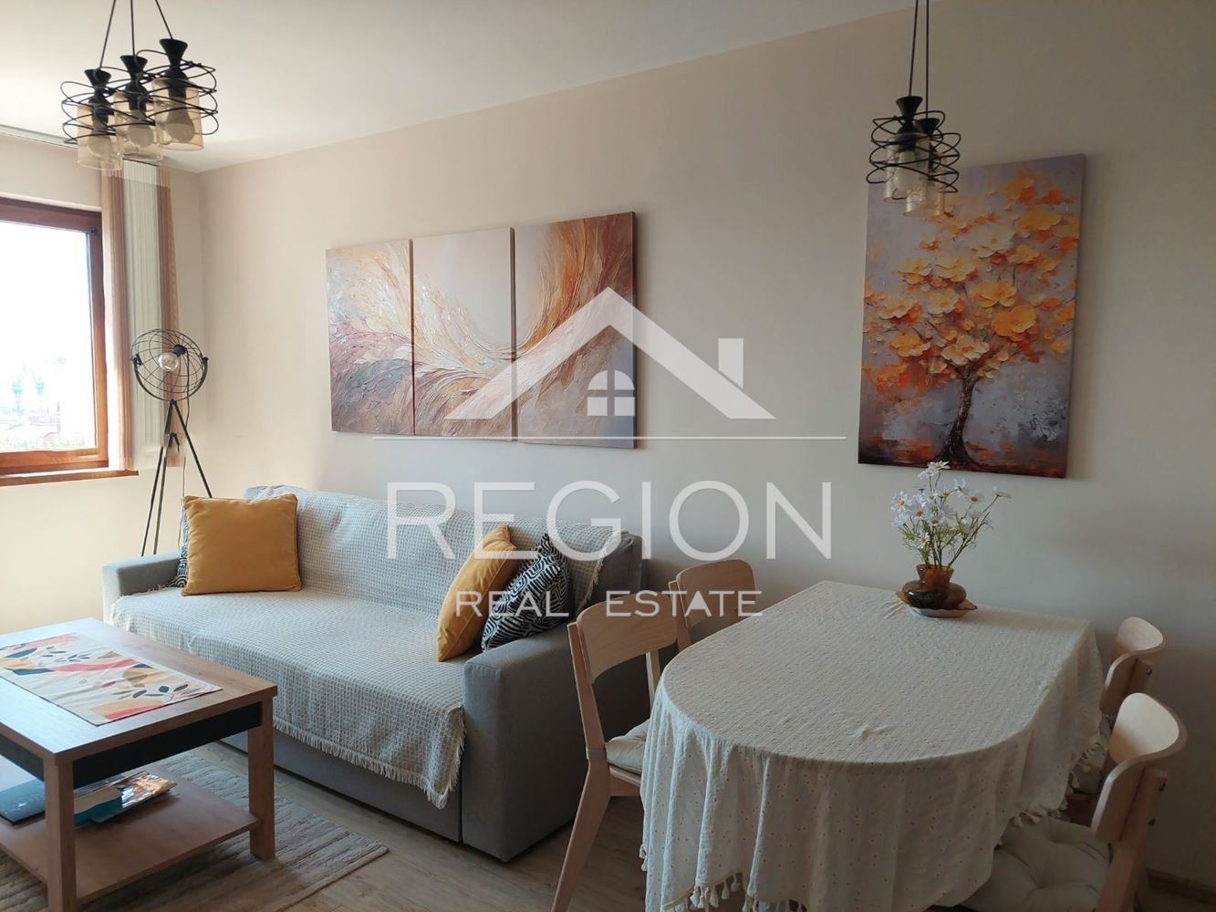 Агенция за недвижими имоти Регион Ви предлага двустаен напълно обзаведен апартамент в района на Център. Жилището е със следното разпределение: дневна с кухненски бокс оборудван с всичко необходимо за едно домакинство, спалня, санитарен възел, тераса. Намира се в близост до спирки на градски транспорт, хранителни магазини, училище, детски градини и площадки. Апартамента се отдава дългосрочно и е подходящ за семейство или съквартиранти. За повече информация относно имота се обадете на посочения телефон.