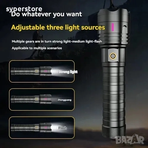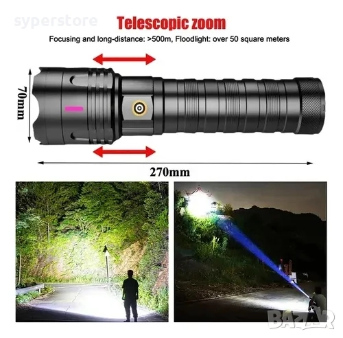 🔭 Телескопичен зуум — регулирай фокуса лесно: от широка осветеност до силно концентриран лъч за далечни цели.