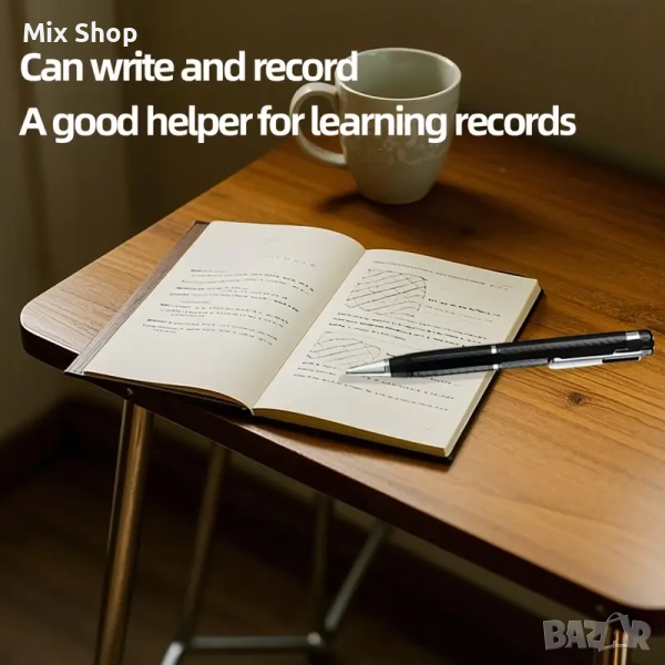 Управлението на записа е лесно и удобно с бутона в горния край на химикалката.
