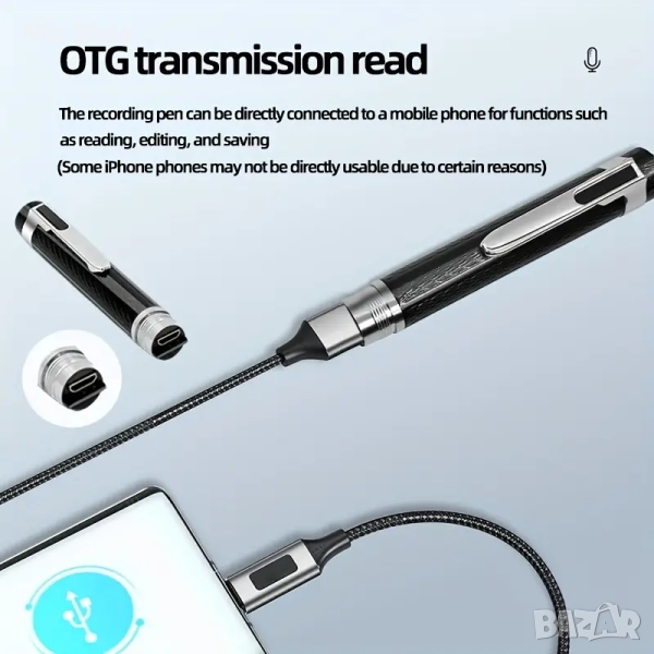 Химикалката има слот за microSD карта и можете да поставите до 64 GB. Там файловете ще се съхраняват и можете да ги копирате, изтривате и преглеждате, когато включите химикалката в компютър.