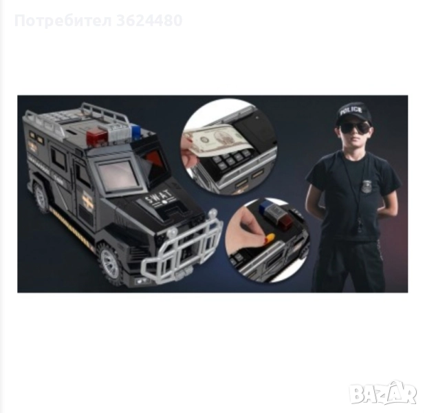Детска касичка Полицейска кола с пръстов отпечатък, пин код и мелодии.