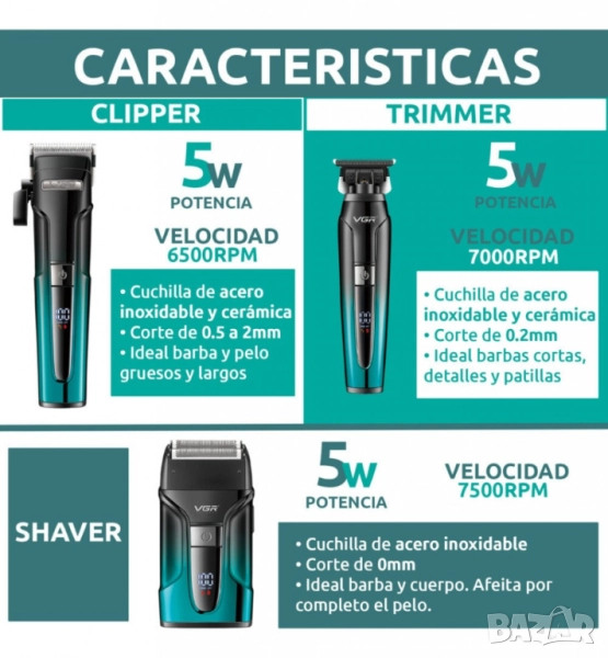 Професионален комплект 3 в 1 VGR V-694 Машинка за подстригване, тример и електрическа самобръсначка → Обява 52133686