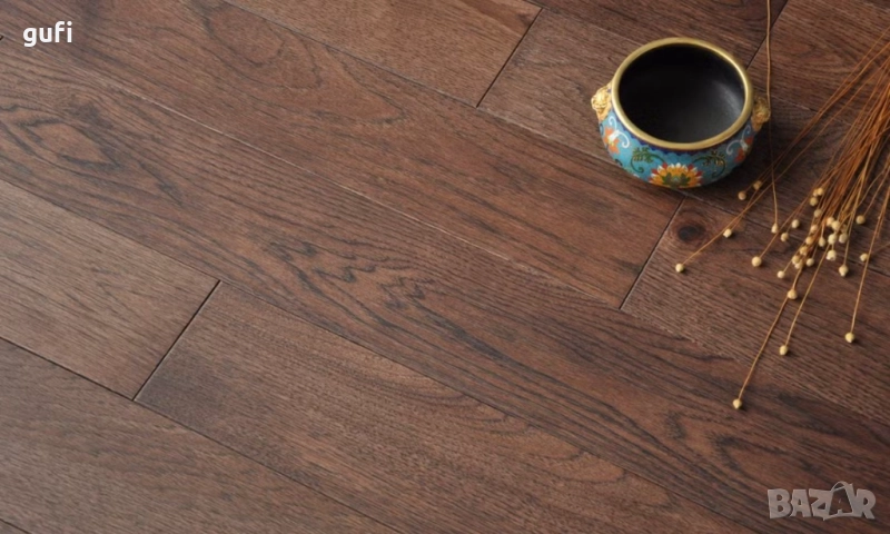 Тъмен Орех естествен паркет ( Dark Walnut natural parquet ), е отлична подова настилка, подходяща както за класически интериор, така и за съвременните стилове. Стилен, качествен, винаги актуален и модерен, вечен. Закопчаването е плътно, с 4V образни фини фуги. Дължината на дъските е 910 мм., а дебелината стабилните 18 мм., което прави тази настилка отличен изолатор. Позволява циклене, след време. Дървото е омаслено в заводски условя, което прави паркета готов за ползване веднага, след монтажа. Повърхността е гладка, полирана с омаслено защитно покритие, устойчива на петна и микро повреди, лесно се почиства. Декора е с изключително наситена тъмна махагонова краска, която носи респект, и класа на всеки под. Подходящ е за жилищни и обществени помещения с висока степен на натовареност.