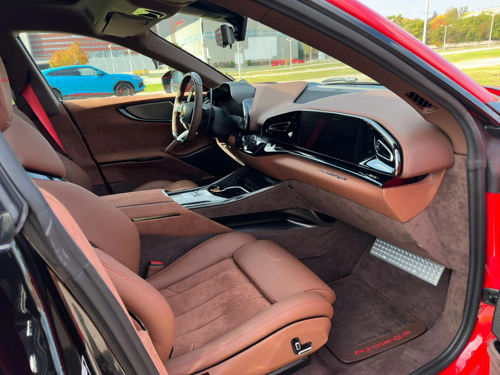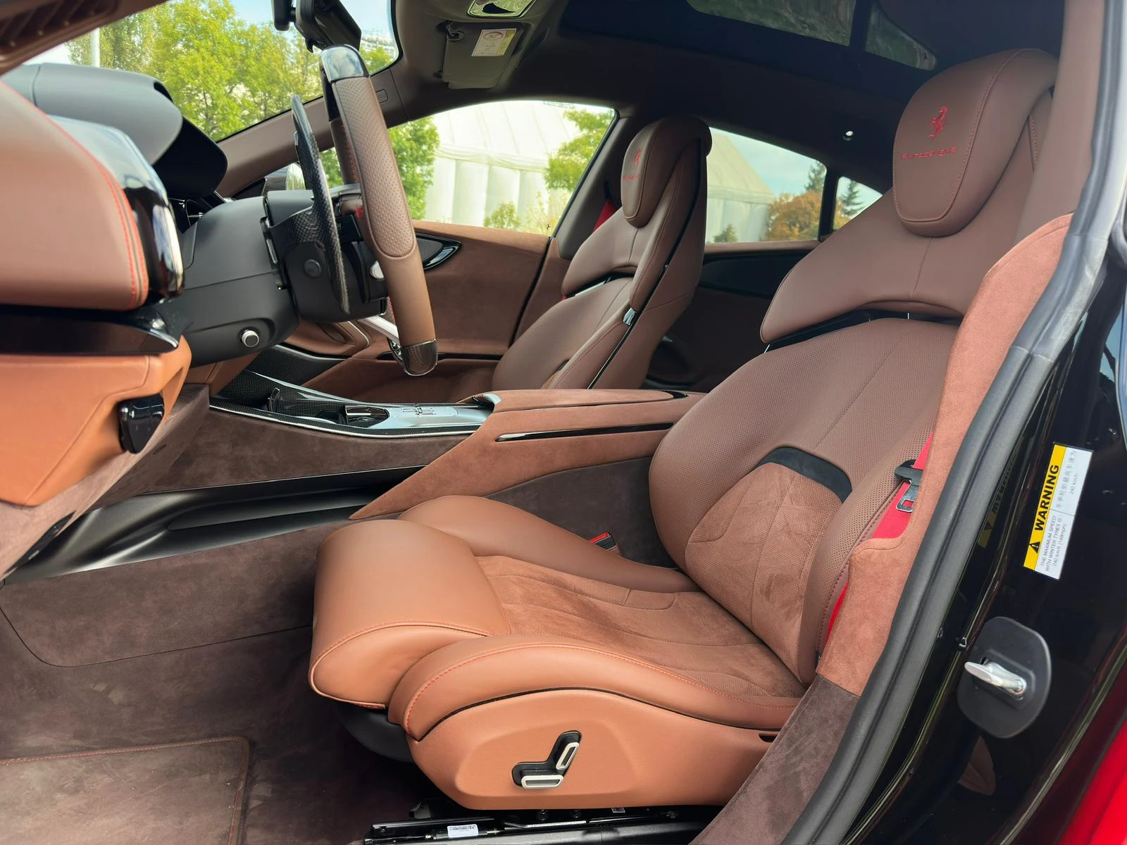 - Цвят Rosso Corsa - Тапицерия кожа/алкантара, кафяво - LED фарове - Асистент за паркиране отпред и отзад - Автопилот - Ел. хроматично вътрешно огледало - Ел. хроматични странични огледала с отопление и прибиране - Carbon Ceramic спирачна система - Безключов достъп - Ел. регулируеми седалки - Performance Launch Control - Scuderia Ferrari гербове на предните калници - Джанти 22 отпред и 23 отзад, Diamond Cut, ковани, Matt Black - Титаниеви болтове за джантите - Спирачни апарати в Rosso Corsa - Панорамен таван - Тонирани задни стъкла - Carbon преден спойлер - Carbon калници - Carbon капаци на огледалата - Carbon заден дифузьор - Carbon външни прагове - Допълнителен обхват Alcantara - Климатизирани предни седалки (отопление/вентилация), с функция за масаж - Климатизирани задни седалки (отопление/вентилация) - Ferrari герб избродиран на подглавниците - Горна част на таблото в цвета на салона - Волан в цвят на салона - Колани в цвета на салона - Контрастен шев на таблото в червено - Волан в Carbon + LED светлини - Отопляем волан - Surround View система от камери
