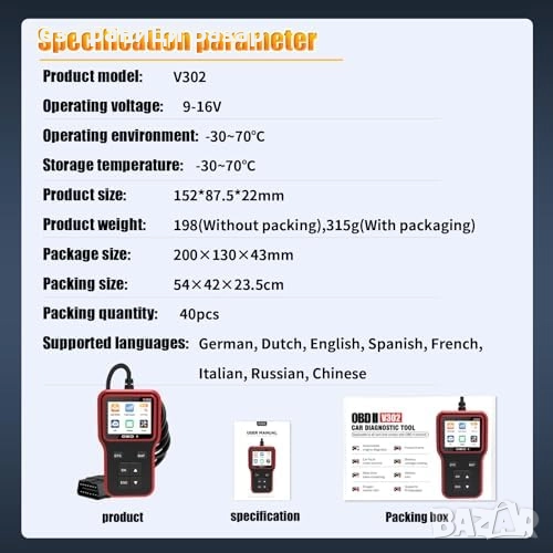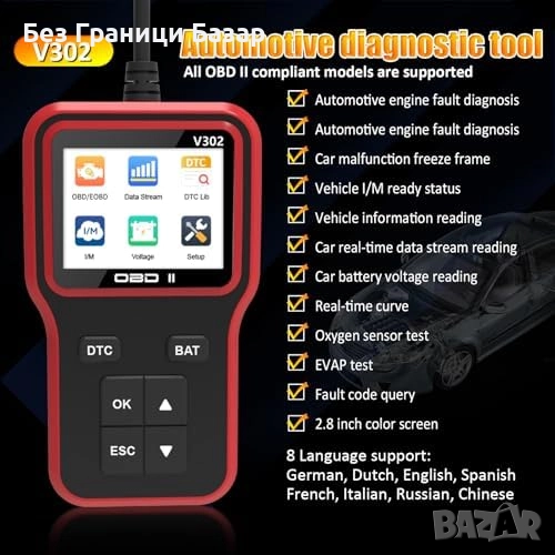 Поддържа всички основни OBDII протоколи: KWP2000, ISO9141, J1850 VPW, J1850 PWM и CAN