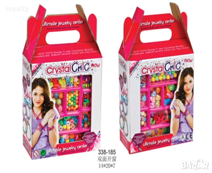 Комплект за създаване на бижута от мъниста. Този комплект за изработка на гривни не предоставя само безкрайни часове на забавление, но и важни уроци в областта на творчеството и ръчната работа. Изработването на гривни с мъниста е дейност, която насърчава децата да развиват своята креативност и въображение. Като избират различни цветове, форми и комбинации на мъниста, те създават уникални дизайни, които отразяват техния стил и визия. Този процес на съчетаване и подреждане на мънистата им дава свобода за самоизразяване и реализация на техните идеи. Освен това, изработването на гривни изисква ръчна работа, която подобрява фините моторни умения на децата. Те трябва да бъдат внимателни и точни, докато нанизват мънистата върху нишката или връзката, което насърчава тяхната концентрация и умения за координация. Един от ключовите аспекти на този набор е разнообразието от мъниста, които се предоставят. Децата имат възможност да избират между мъниста в различни цветове и форми. Това стимулира технито цветово зрение и ги учи да разпознават и съчетават различни цветове и форми. Те могат да създават гривни със симетрични или асиметрични дизайни, което ги насърчава да мислят креативно и да експериментират. Най-важното е, че изработването на гривни с мъниста дава възможност на всяко дете да изрази своя индивидуален стил. – подходяща възраст: 6+ – размери на опаковката: 14 х 20 х 7 см – комплектът включва: над 300 части – материал: конец и PVC