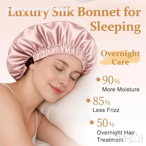 Нова Голяма сатенена шапка за сън – гладка и здрава коса без накъсване