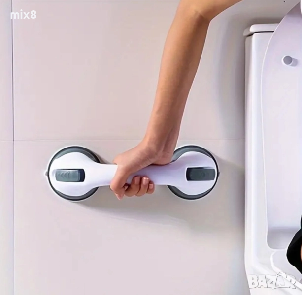Преносима вакуумна дръжка, предназначена за баня.Служи като допълнителна опора за безопасност и може да се монтира на гладки повърхности, като плочки или стъкло, без да се налага пробиване.