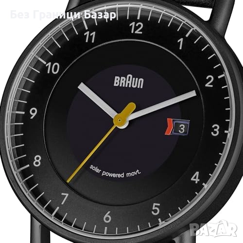 Нов Мъжки соларен часовник Braun, черен циферблат и кожена каишка